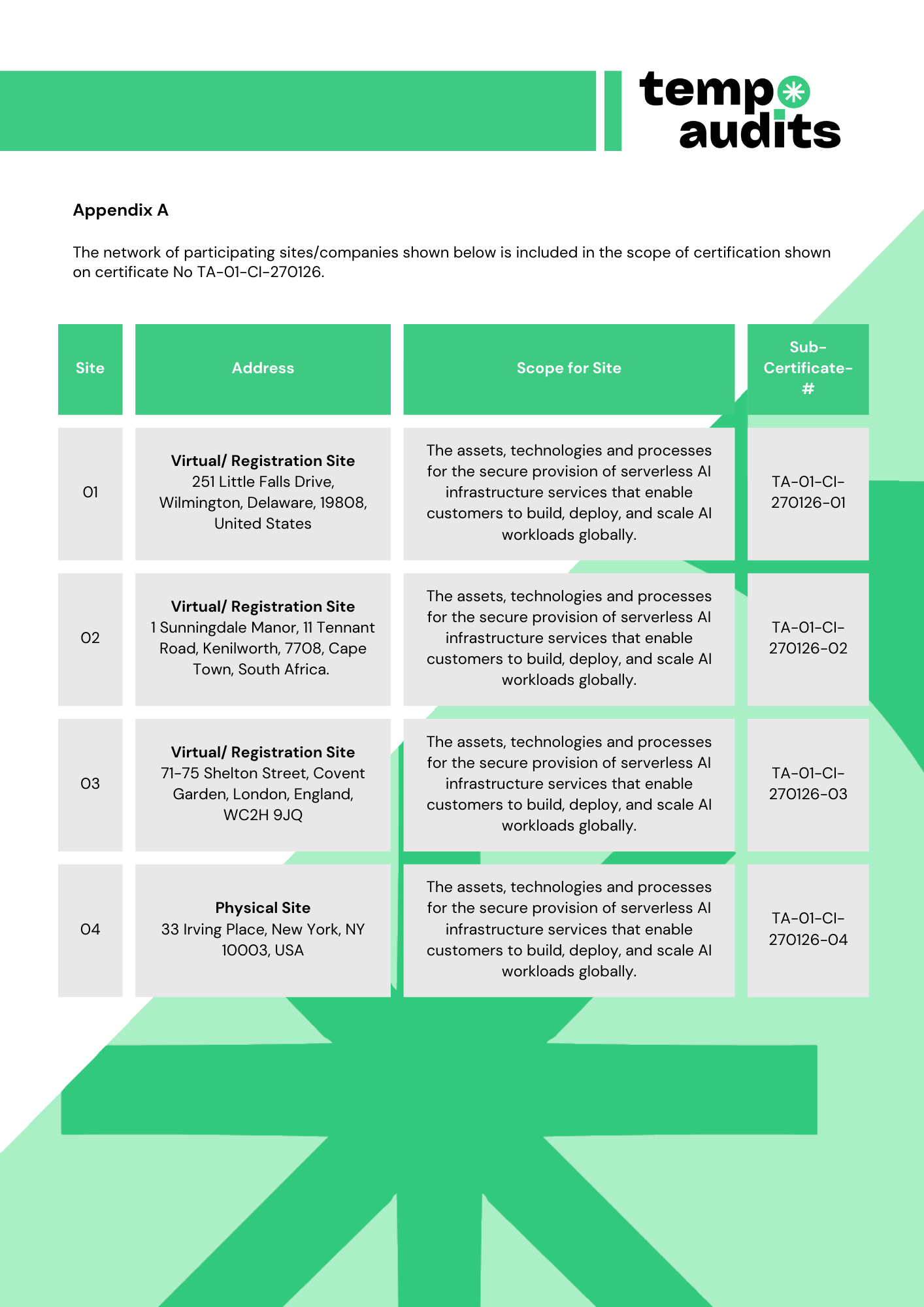 Tempo Audits is proud to issue this ISO 27001 certificate to Cerebrium, Inc!