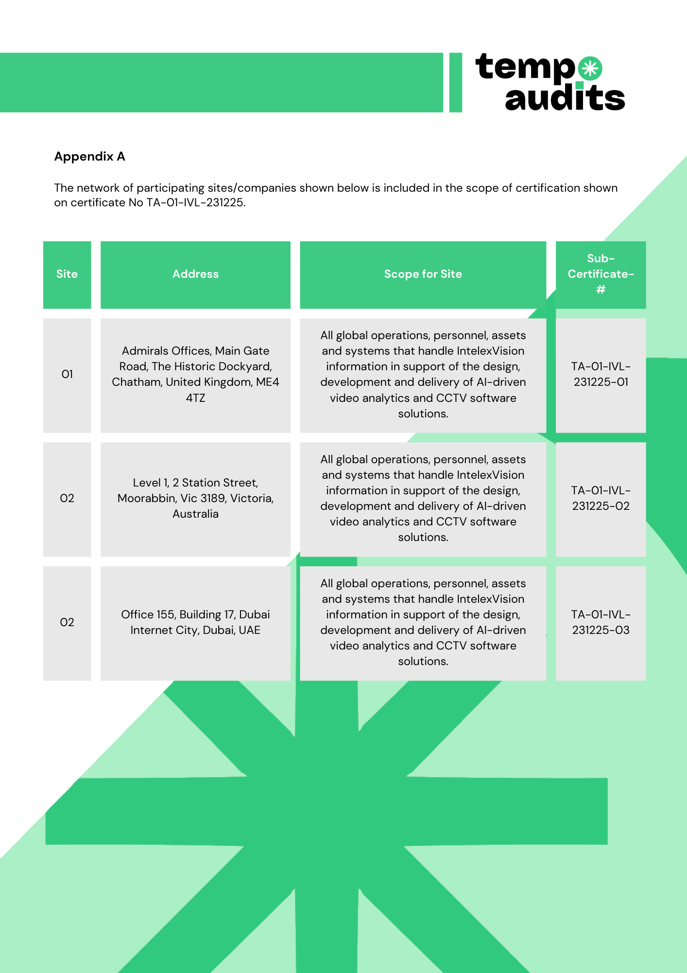 Intelex Vision Ltd has successfully achieved their ISO 27001 certification, demonstrating their commitment to the highest standards of information security management. Tempo Audits is a specialist ISO 27001 certification body, specialising in modern tech companies - we ensure that our clients meet the high standards required of them.