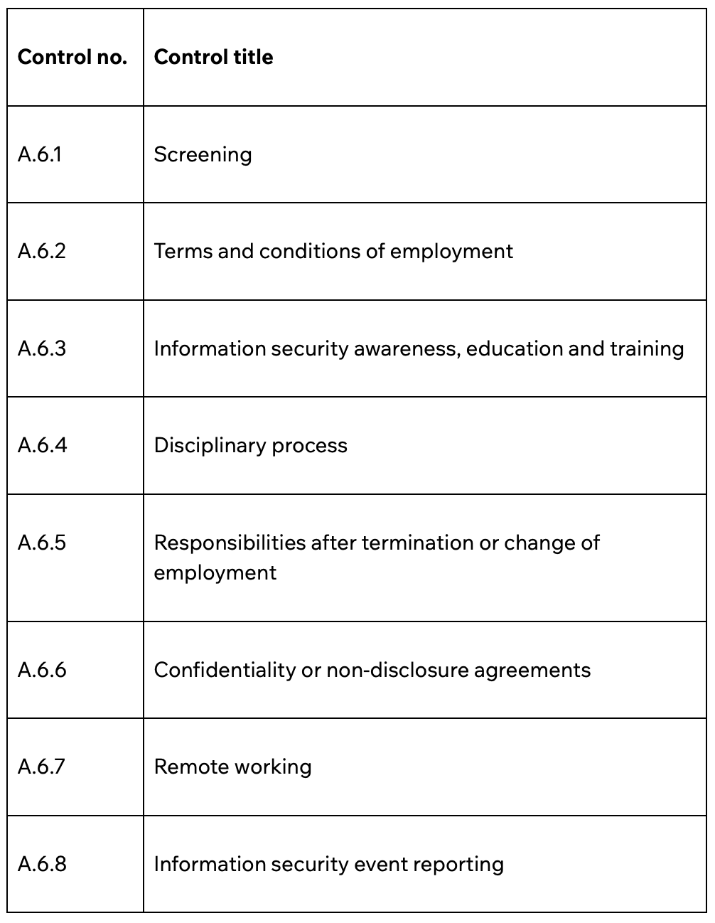 People controls (A.6 - 8 controls)