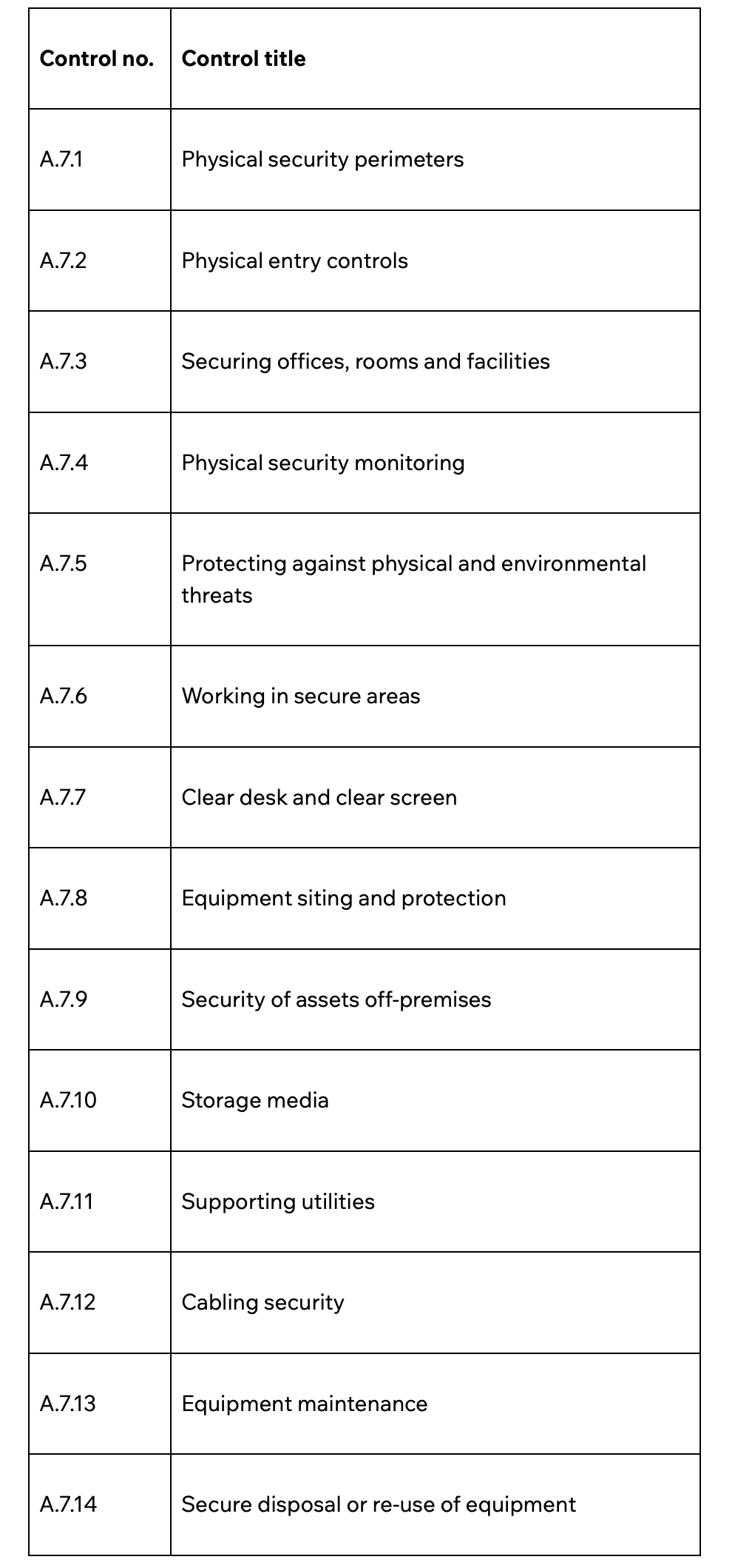 Physical controls (A.7 - 14 controls)