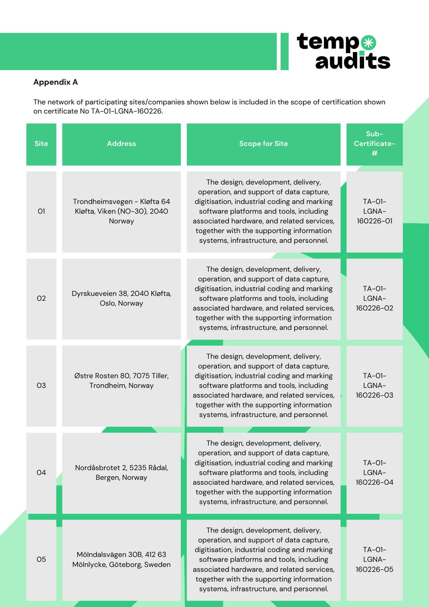 Lexit Group Norway AS (trading as “Lexit Group”) has successfully achieved their ISO 27001 certification, demonstrating their commitment to the highest standards of information security management. Tempo Audits is a specialist ISO 27001 certification body, specialising in modern tech companies - we ensure that our clients meet the high standards required of them.