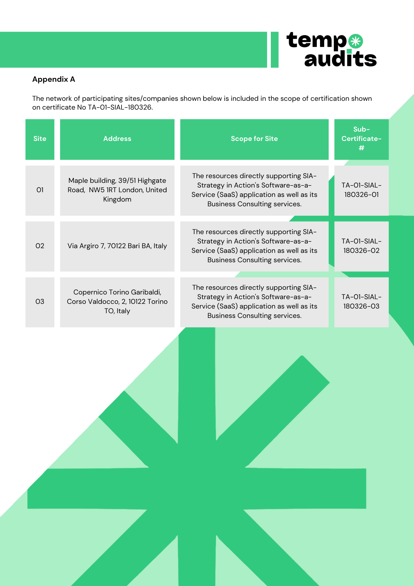 Tempo Audits is proud to issue this ISO 27001 certificate to Strategy in Action!